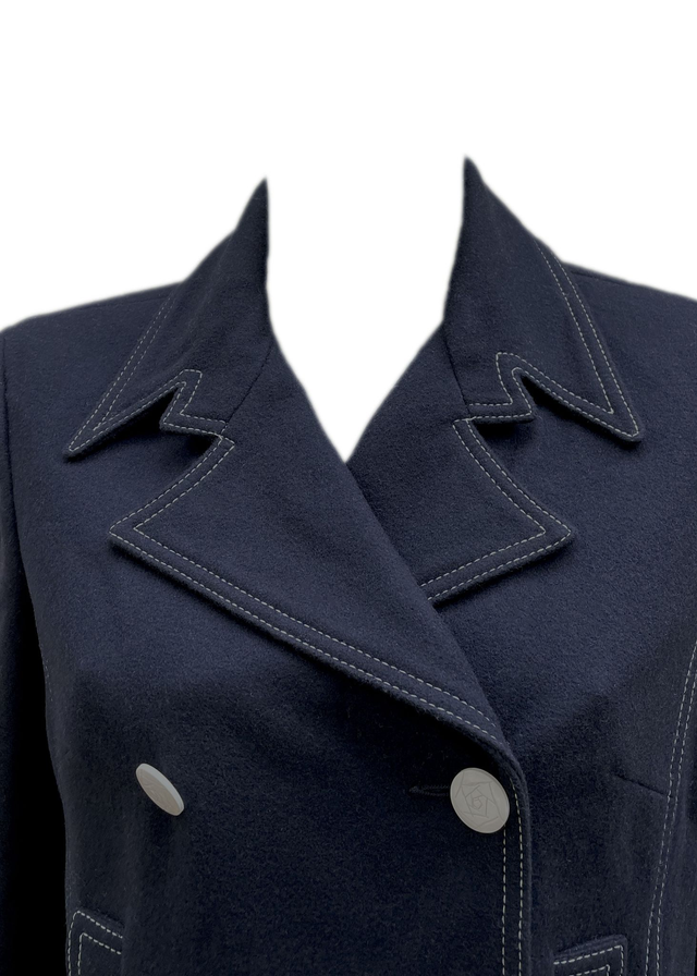 Galliano par John Galliano, Circa 2005-2010 – Veste Caban Navy à Surpiqûres Contrastées